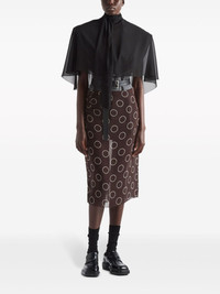 dot-print georgette pencil skirt Lightweight materials are rooted in Prada's SS24, as evidenced by this midi skirt. The pencil silhouette is made from billowing georgette and adorned with a contrasting dot print throughout. Highlights - Amaranth purple/white - Georgette - Micro-dot print - Semi-sheer construction - Draped detailing - High-waisted - Pencil silhouette - Partial lining - Straight hem - Mid-length Composition Nylon 100% Washing instructions Read Manufacturer Guidelines