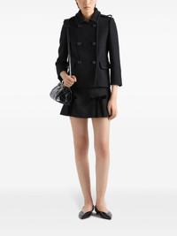 double-breasted jacket Highlights - Black - Double-breasted button fastening - Spread collar - Epaulettes - Three-quarter length sleeves - Buttoned cuffs - Two front flap pockets - Enamel triangle logo - Full lining - Straight hem Composition Outer: Virgin Wool 100%