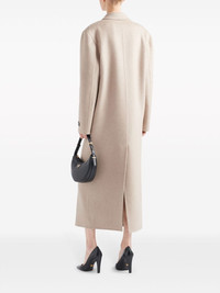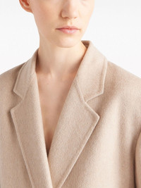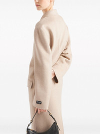 double-breasted velour cashmere coat Highlights - Almond beige - Cashmere - Leather logo patch at the sleeve - Notched lapels - Double-breasted button fastening - Long sleeves - Two front flap pockets - Central rear vent - Mid-length - Partial lining Composition Cashmere 100% Washing instructions Read Manufacturer Guidelines