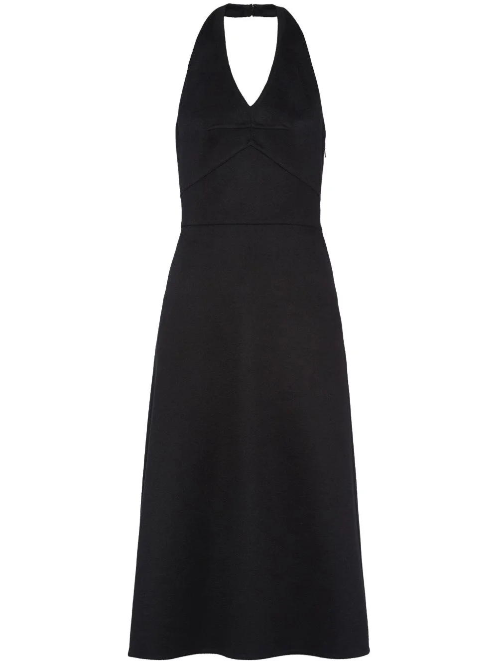Double cashmere halter midi-dress Highlights - Sleek, clean lines define the silhouette of this sophisticated dress enriched with the precious qualities and soft touch of double cashmere. the simple yet refined design has a flared skirt with timeless allure and is defined by the elegant halter neck. Composition Cashmere 100% Washing instructions Read Manufacturer Guidelines