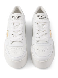 Downtown Bold leather sneakers Highlights - White - Leather - Smooth grain - Panelled design - Triangle logo - Logo-print tongue - Round toe - Front lace-up fastening - Perforated toebox - Branded heel counter - Branded leather insole - Platform sole Composition Leather 100% SIZE & FIT Measurement HEEL 1.96 in(5 cm)