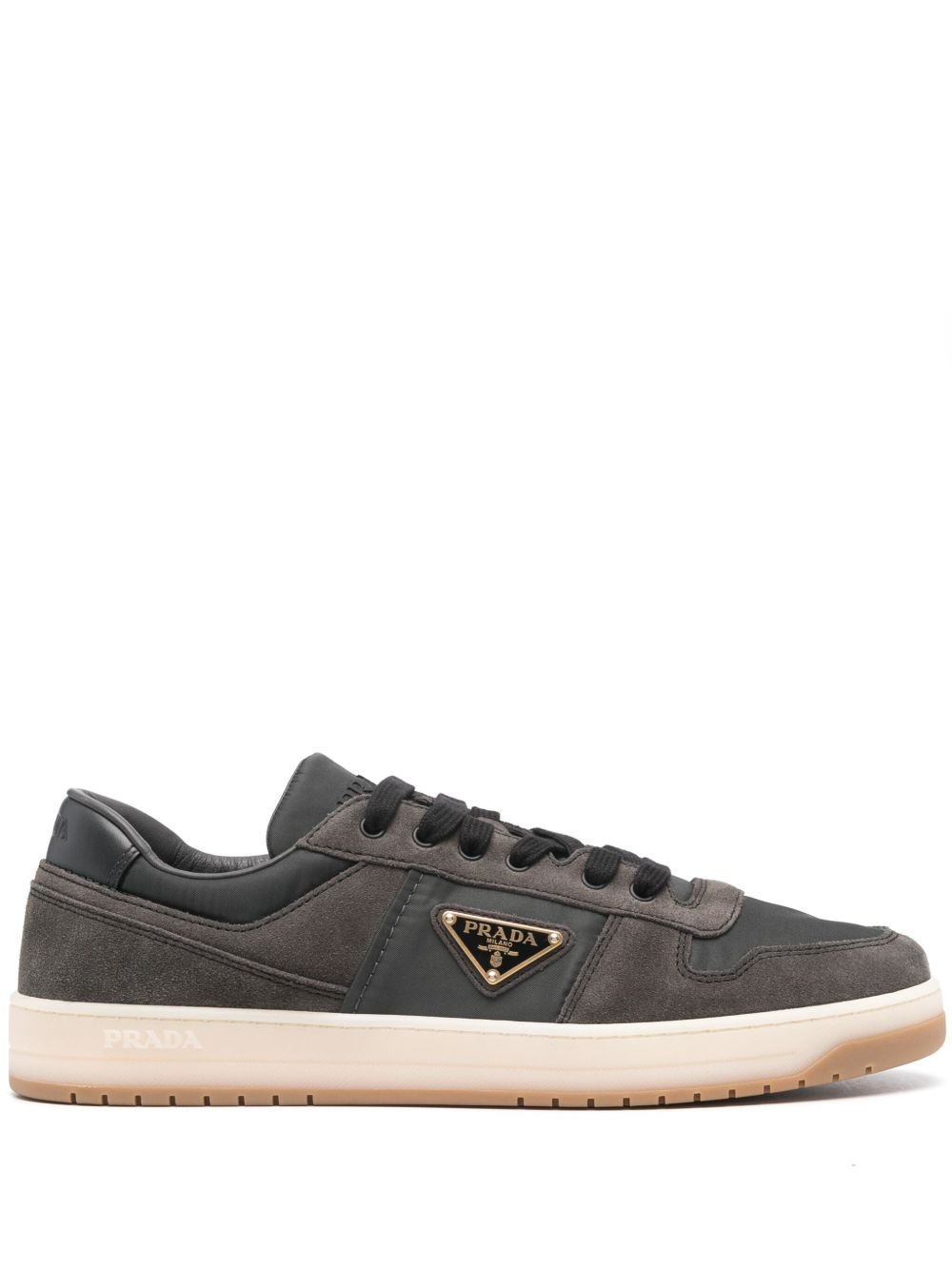 Downtown sneakers Highlights - Grey - Calf suede - Panelled design - Re-nylon panelling - Rubberised logo detail - Enamel triangle logo - Branded heel counter - Round toe - Front lace-up fastening - Branded leather insole - Flat rubber sole Composition Outer: Calf Suede 100%, Fabric 100% Sole: Rubber 100% Lining: Calf Leather 100% SIZE & FIT Measurement Sole height 0.98 in(2.5 cm)