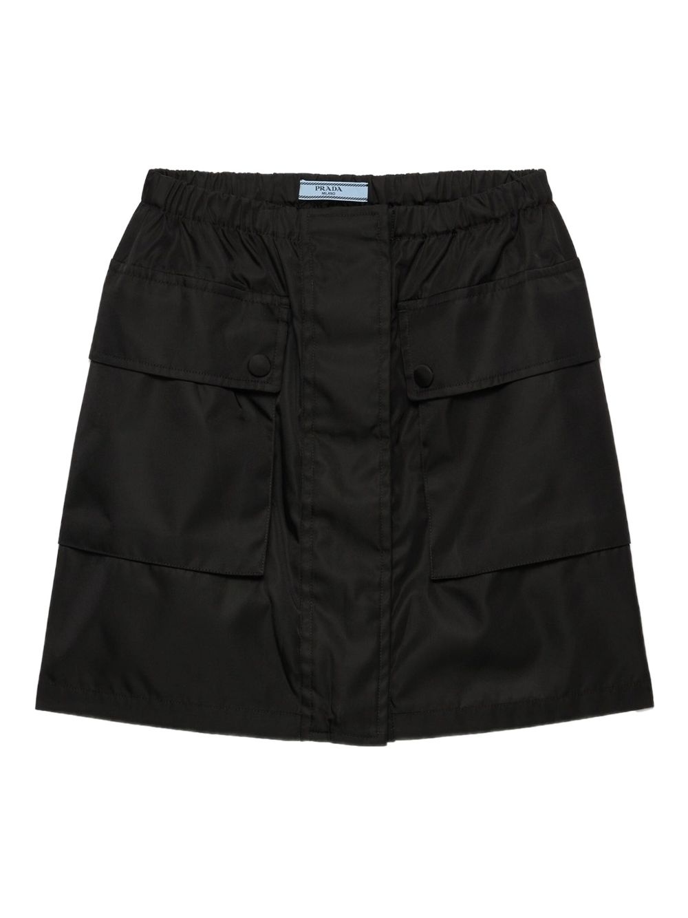 elasticated-waist mini skirt Highlights - Black - Elasticated waistband - Front button detail - Side slip pockets - Logo patch - Gathered design Composition Recycled Polyamide 100%