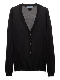 embroidered-logo cardigan Highlights - Black - Plain knit - Ribbed collar - Button closure - Long sleeves - Triangle logo Composition Cashmere 50%, Silk 50% Washing instructions Read Manufacturer Guidelines