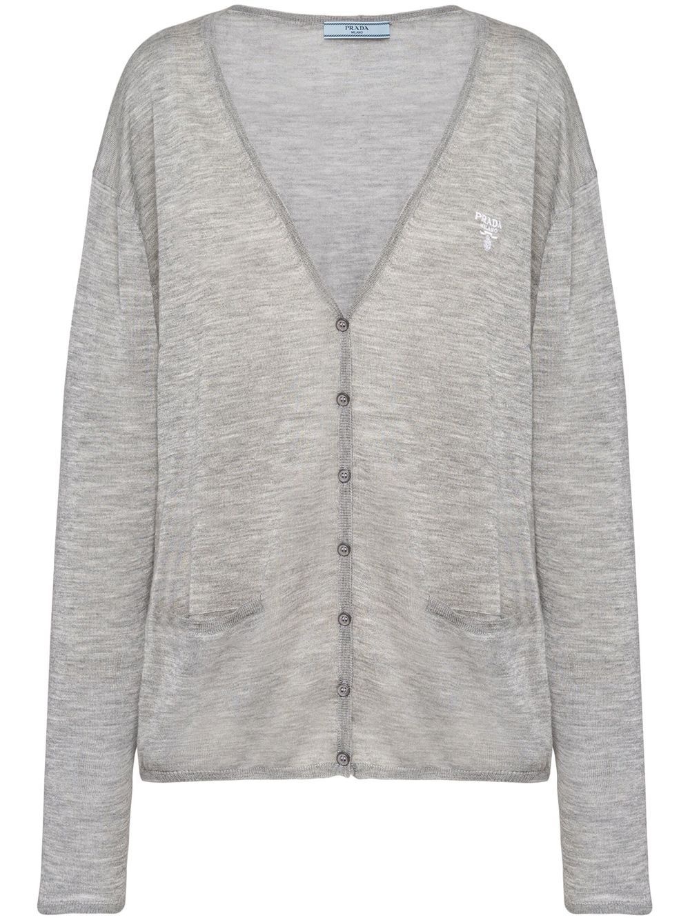 logo-embroidered cashmere-silk cardigan Highlights - Cool grey - Cashmere/silk - Embroidered logo - V-neck - Front button fastening - Long sleeves - Two front patch pockets - Straight hem Composition Silk 100%, Cashmere 100%