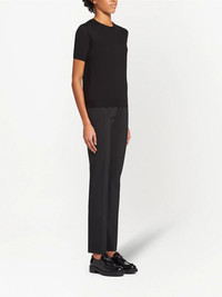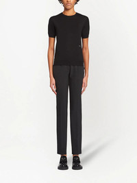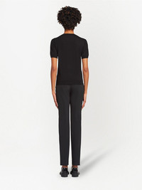 logo-embroidered wool jumper You're all for understated luxury but sometimes you just have to show the world where your favourite top is from. That's why this short-sleeve jumper is embroidered with a small Prada logo on the side. Only the most attentive will get the hint. Highlights - Black - Wool - Knitted construction - Fine knit - Small embroidered logo to the side - Short sleeves - Round neck - Straight hem Composition Wool 100%