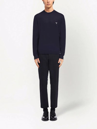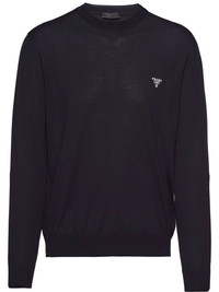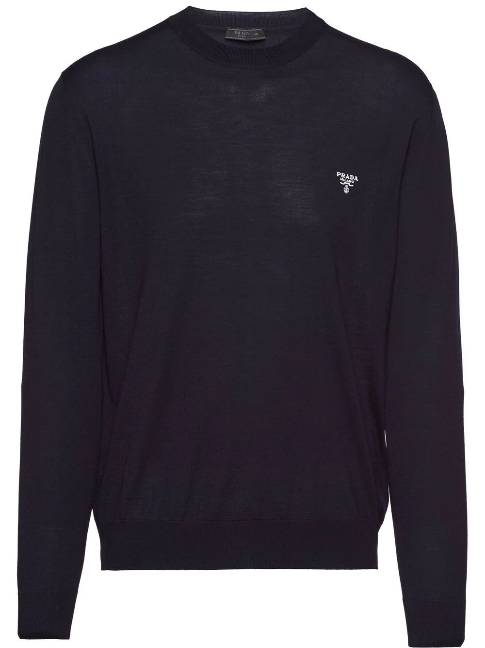 logo-embroidered wool jumper Embracing Prada's minimalistic side, this navy-hued jumper is part of the house's SS22 collection and woven from soft virgin wool. Adorned with an embroidered logo at the chest, it is finished with a crew neck and ribbed detailing at the hem and cuffs. Highlights - Midnight blue - Embroidered logo at the chest - Crew neck - Long sleeves - Ribbed edge Composition Wool 100%