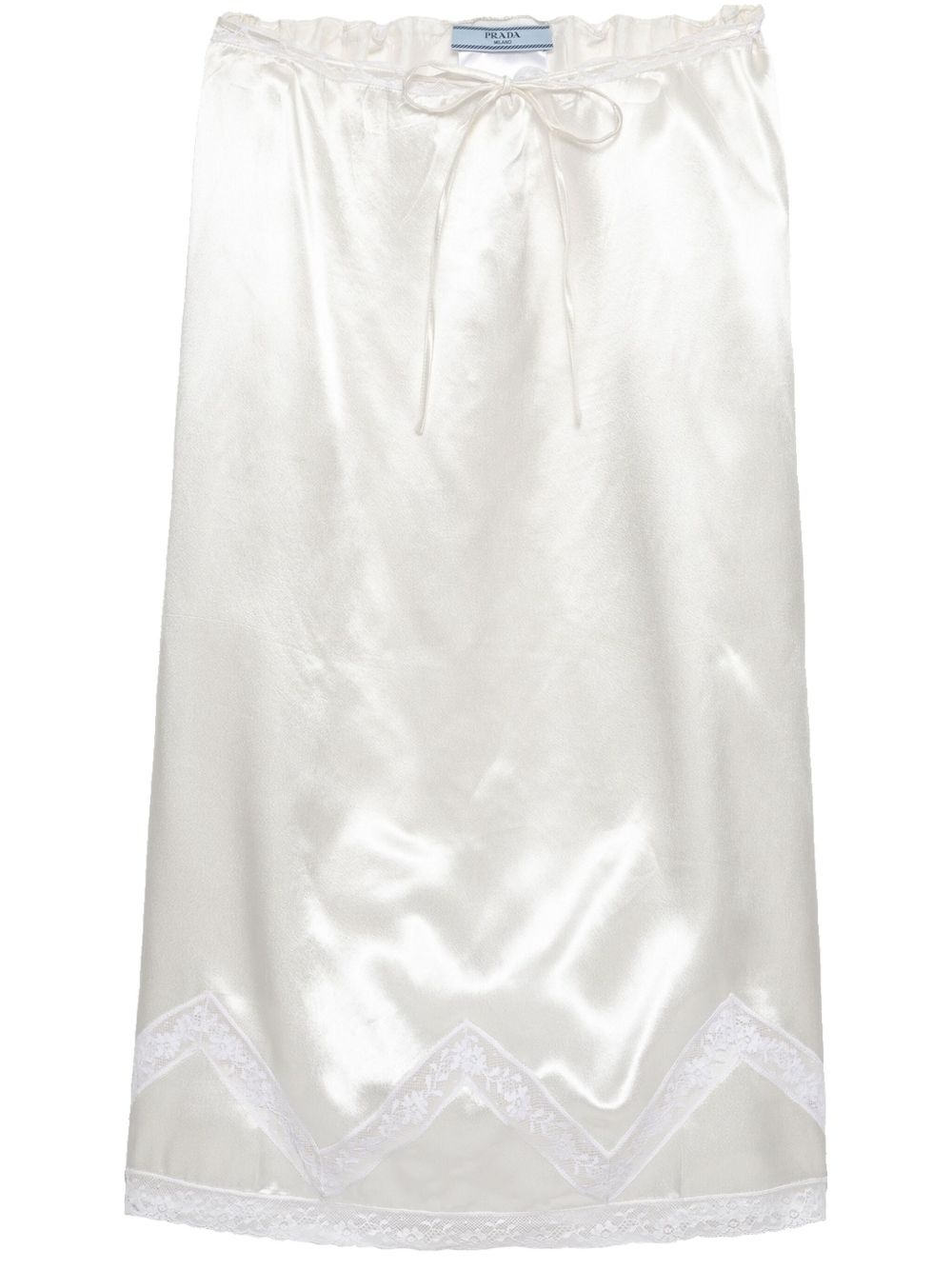 embroidered satin midi skirt Highlights - White - Drawstring waist - Lace trim - Mid-length Composition Acetate 54%, Viscose 46%