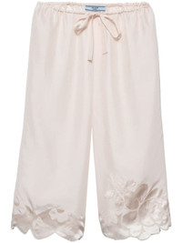 embroidered silk bermuda shorts Highlights - Light pink - Silk - Satin finish - Floral embroidery - Elasticated drawstring waistband - High-waisted - Pleat detailing - Straight leg - Scallop hem - Knee-length Composition Silk 100%