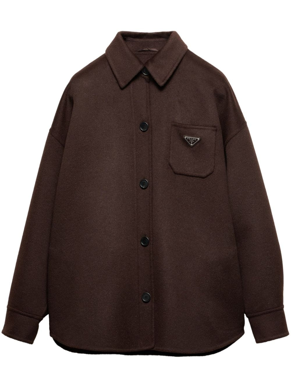 enamel-logo wool jacket Highlights - Brown - Wool - Enamel triangle logo - Front button fastening - Classic collar - Chest patch pocket - Long sleeves - Buttoned cuffs - Curved hem - Unlined Composition Wool 100%