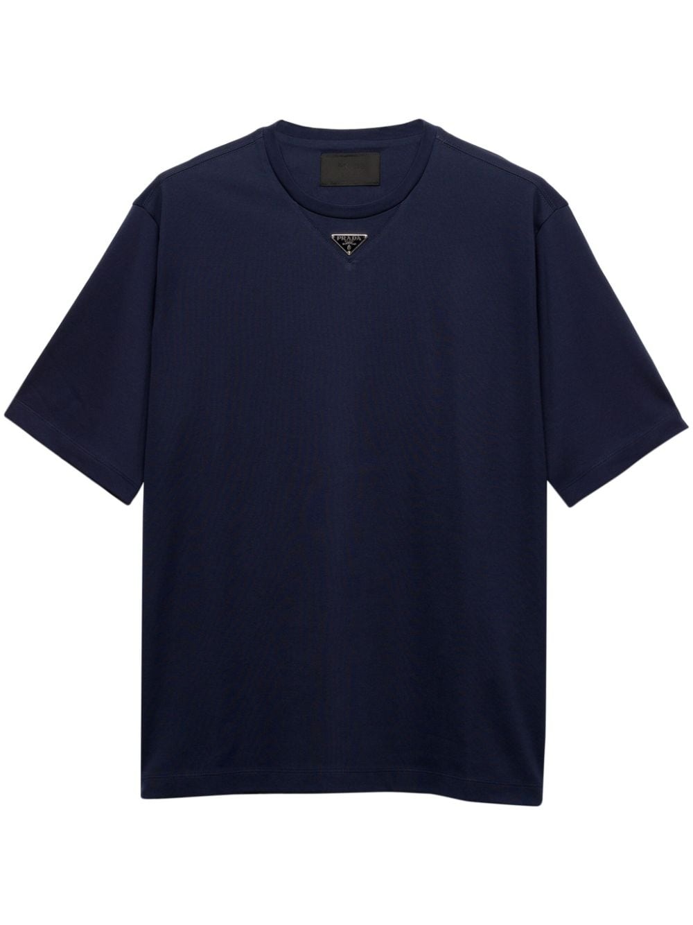 enamel triangle-logo cotton T-shirt Highlights - Navy blue - Cotton - Enamel triangle logo - Round neck - Short sleeves - Straight hem Composition Cotton 100%