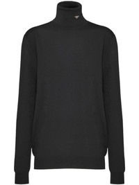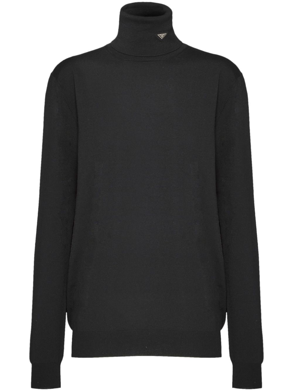enamel triangle-logo wool jumper Highlights - Black - Wool - Ribbed fine knit - Ribbed trim - Roll neck - Enamel triangle logo - Long sleeves - Straight hem Composition Wool 100% Washing instructions Read Manufacturer Guidelines