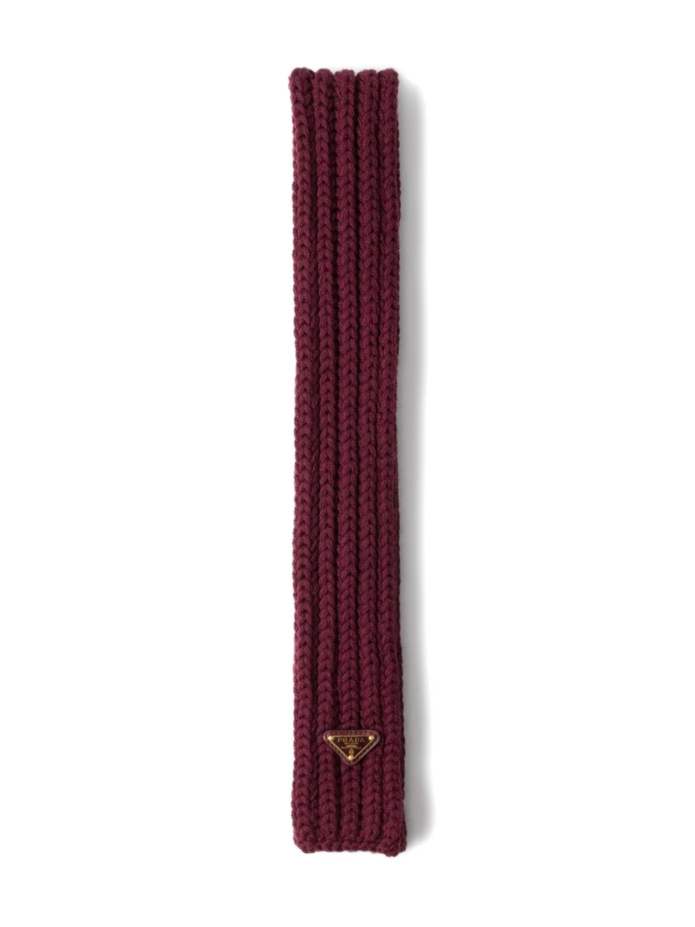 enameled metal rib knit scarf Highlights - Burgundy - Enameled metal triangle logo - Fisherman's rib knit Composition Virgin Wool 100%