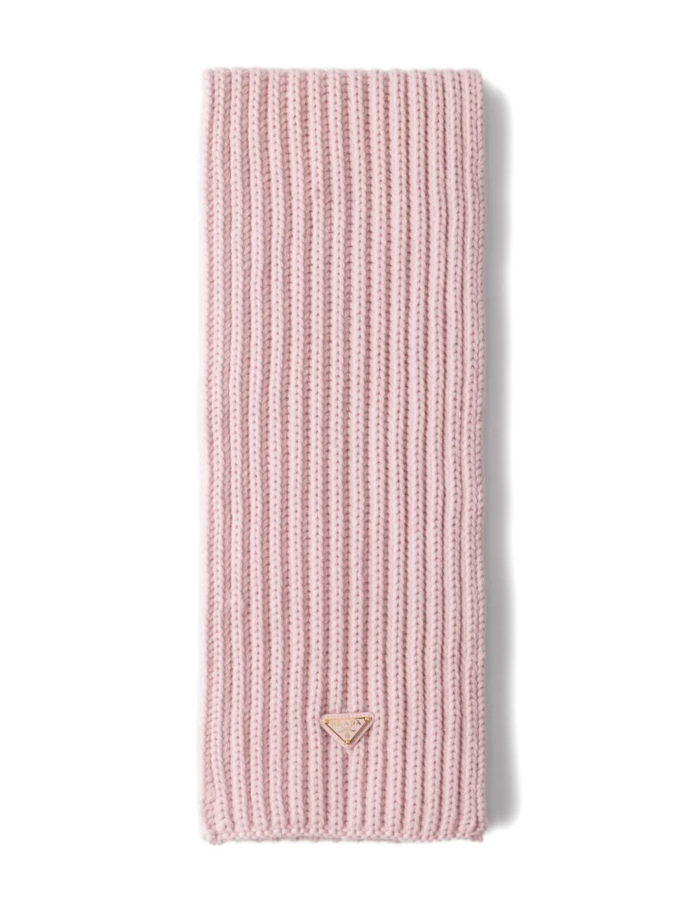 enameled triangle rib knit scarf Highlights - Powder - Rib knit - Enameled metal triangle logo - Cashmere - Wool Composition Virgin Wool 100%