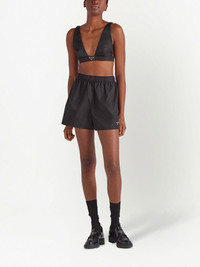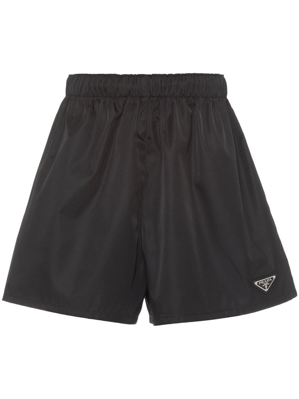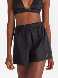 Re-Nylon triangle-logo shorts Highlights - Black - Recycled nylon - Stretch-design - Enamel triangle logo - Elasticated waistband - Two diagonal pockets to the sides - Thigh-length Composition Recycled Nylon 100%