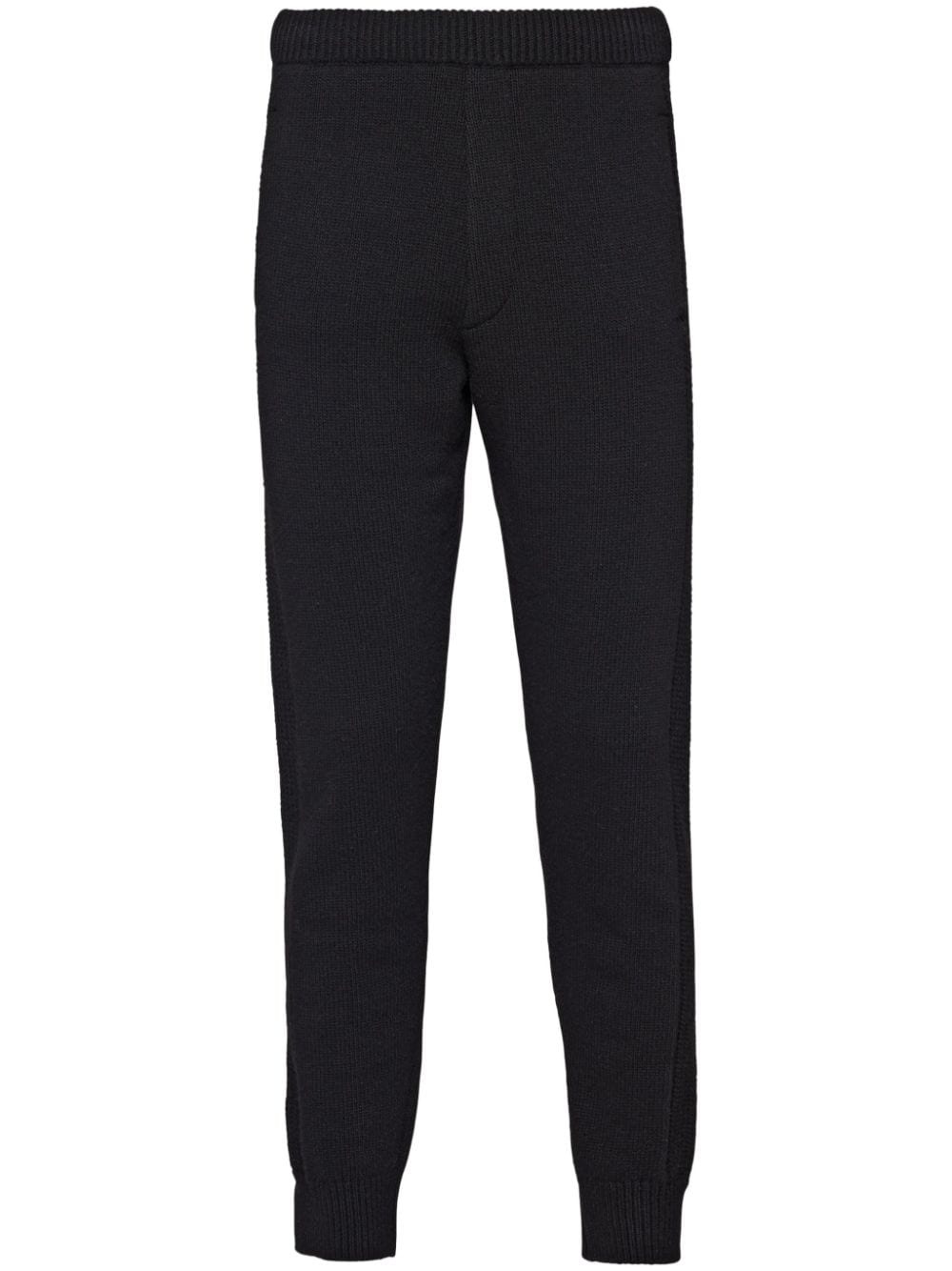 fine-knit cashmere track pants Highlights - Black - Cashmere - Fine knit - Ribbed-knit edge - Triangle logo - Mid-rise - Elasticated waistband - Tapered leg - Two side slash pockets - Rear patch pocket - Elasticated ankles Composition Cashmere 100% Washing instructions Read Manufacturer Guidelines