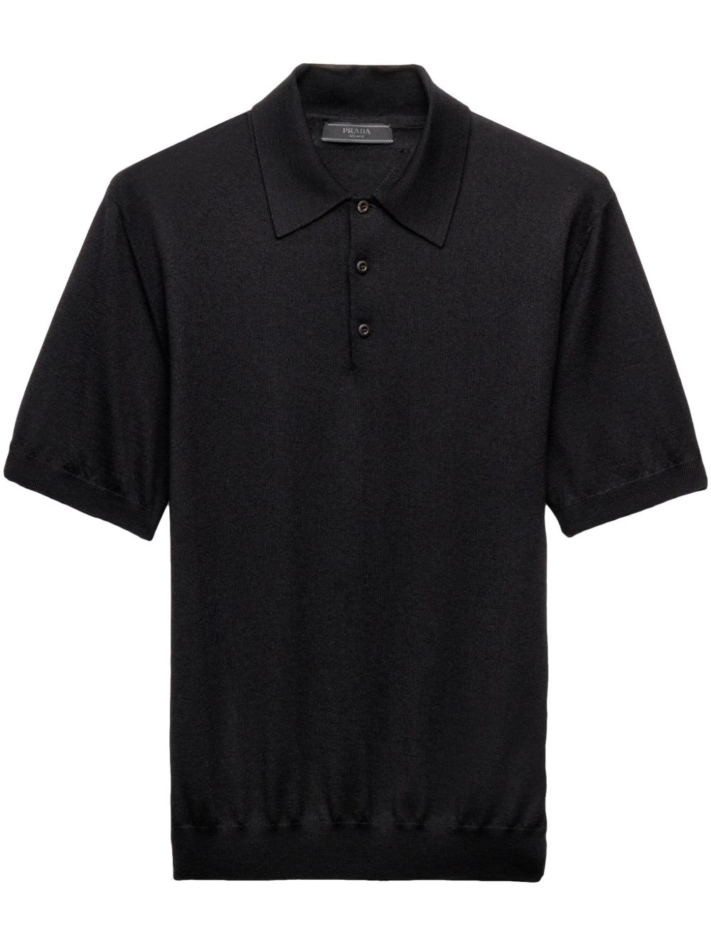 fine-knit polo shirt Highlights - Black - Front button placket - Polo collar - Short sleeves - Ribbed trim Composition Cashmere 70%, Silk 30%