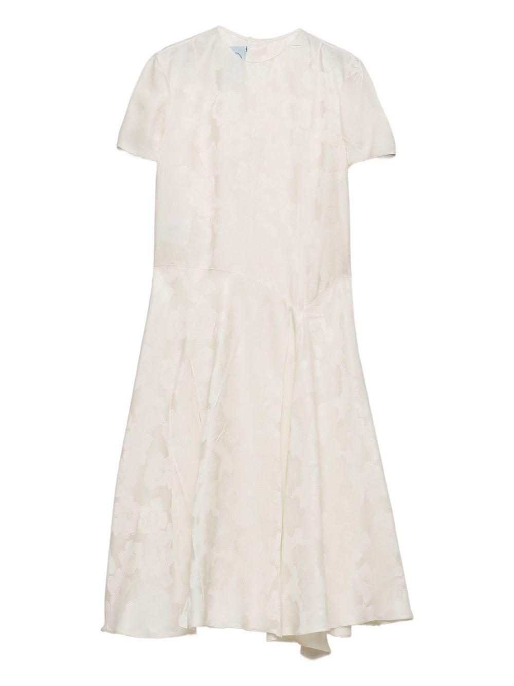 floral jacquard midi dress Highlights - Off-white - Jacquard pattern - Short sleeves - Crew neck Composition Viscose 100% Washing instructions Read Manufacturer Guidelines