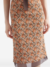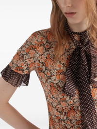 Floral print dress Highlights - Ochre orange - Crew neck - Bow detailing - Short sleeves - Ruffled detailing Composition Silk 100%