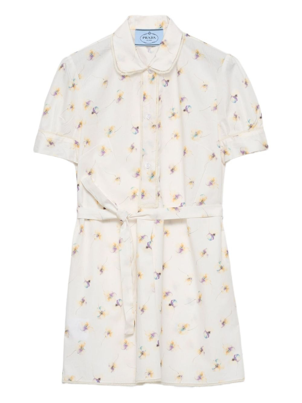 floral print dress Highlights - Light yellow - Front button placket - Rounded collar - Short puff sleeves - Tied waist Composition Cotton 100% Washing instructions Read Manufacturer Guidelines
