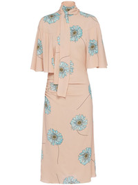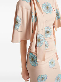 floral-print pencil dress Highlights - Beige/multicolour - All-over floral print - Draped detailing - Pussy-bow collar - Rear zip fastening - Flutter sleeves - Pencil silhouette - Straight hem - Mid-length Composition Viscose 100%