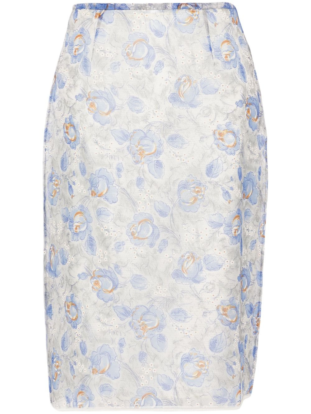 floral-print sheer pencil skirt