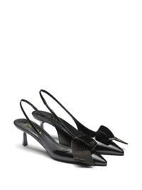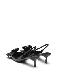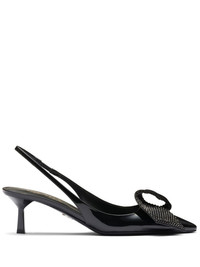 55mm crystal-embellished slingback pumps A crystal-embellished, sculptural bow takes centre stage at the front of these black pumps from Prada. They're crafted from glossy patent leather with a slender slingback strap. Highlights - Black - Leather - Patent finish - Rhinestone embellishment - Folded edge - Pointed toe - Elasticated slingback strap - Branded footbed - Low sculpted heel Composition Sole: Leather 100% Outer: Patent Leather 100% Lining: Leather 100%