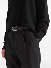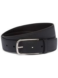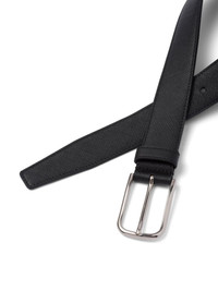 buckled leather belt Prada spotlights its timeless elegance in this classic leather belt. Its black strap is contrasted by the polished silver-tone of its front buckle. Highlights - Black - Leather - Silver-tone hardware - Front buckle fastening - Punched holes - Adjustable fit Composition Leather 100%