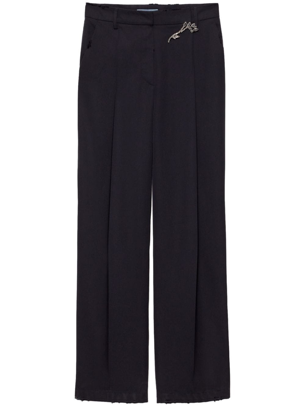 gabardine trousers Highlights - Blue - Wool - Pressed crease - Hook and zip fly fastening - Belt loops - Brooch detail - Two rear welt pockets - Straight leg Composition Wool 100%, Crystal 60%, Brass 40%