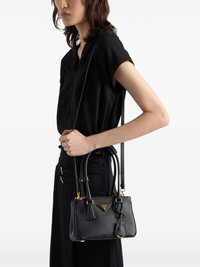 Galleria mini bag Highlights - Black - Leather - Top press-stud fastening - Two rolled top handles - Adjustable detachable shoulder strap - Enamel triangle logo - Two zip-fastening pockets - Main compartment - Internal zip-fastening pocket - Internal logo patch Composition Outer: Leather 100% SIZE & FIT Measurement DEPTH 3.74 in(9.5 cm) HEIGHT 5.31 in(13.5 cm) STRAP 47.24 in(120 cm) WIDTH 7.87 in(20 cm)