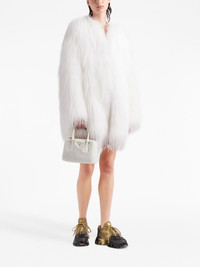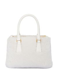 Galleria shearling mini bag Named after the historic Prada store that opened in 1913 in Galleria Vittorio Emanuele II of Milan, this Galleria tote pairs the brand's heritage with contemporary design. Made from soft, fuzzy shearling, it is presented in a white hue for an extra modern look. Highlights - White - Sheepskin - Shearling - Calf leather - Adjustable detachable shoulder strap - Two top handles - Top zip fastening - Triangle logo - Main compartment - Internal zip-fastening pocket - Gold-tone hardware Composition Outer: Sheep Skin/Shearling 100%, Calf Leather 100% SIZE & FIT Measurement DEPTH 3.74 in(9.5 cm) HEIGHT 5.7 in(14.5 cm) WIDTH 7.87 in(20 cm)