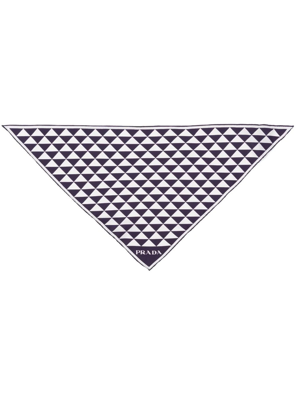 geometric-print silk scarf Prada is renowned for combining key elements of the house's signatures in fresh ways. True to the label's approach, this scarf transforms the iconic triangle logo into a bold geometric print in a play of white and navy blue hues. Composition Silk 100% SIZE & FIT Measurement WIDTH 30.7 in(78 cm) LENGTH 21.65 in(55 cm)