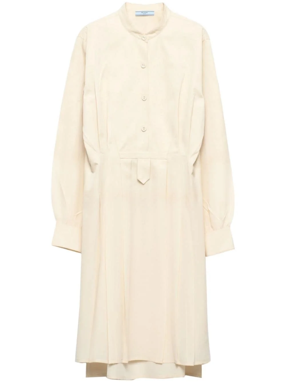 gradient-effect silk midi dress Highlights - Cream white - Silk - Crepe de chine - Gradient effect - Triangle logo - Band collar - Front button fastening - Long sleeves - Buttoned cuffs - Side slits - High-low hem - Mid-length - Unlined Composition Silk 100% Washing instructions Read Manufacturer Guidelines