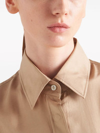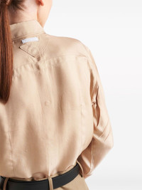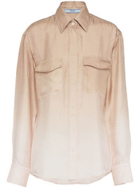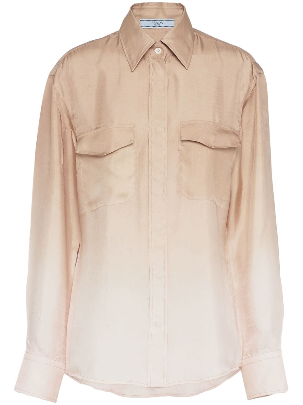 gradient-effect silk shirt Highlights - Sand beige/light beige - Silk - Gradient effect - Triangle logo - Classic collar - Front button fastening - Drop shoulder - Long sleeves - Buttoned cuffs - Chest flap pockets - Curved hem Composition Silk 100% Washing instructions Read Manufacturer Guidelines