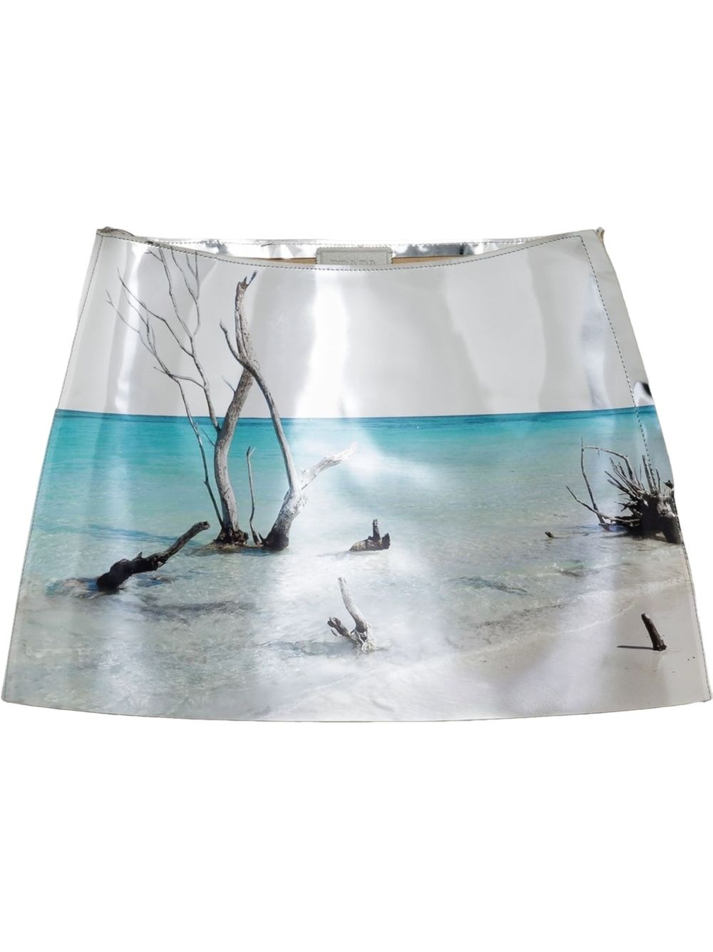 high-shine leather mini skirt Highlights - Silver-tone - Side zip fastening - All-over graphic print - A-line - Straight hem Composition Leather 100%