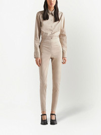 high-waisted slim-cut trousers Highlights - Limestone beige - Cotton - Poplin texture - High-waisted - Skinny cut - Cuff zips Composition Cotton 100% SIZE & FIT FittingInformation Designed for a slim fit, these trousers offer a close fit at the waist, allowing a comfortable close fit and some movement over the leg Made from a midweight non-stretch fabric, this piece offers minimal elasticity when worn