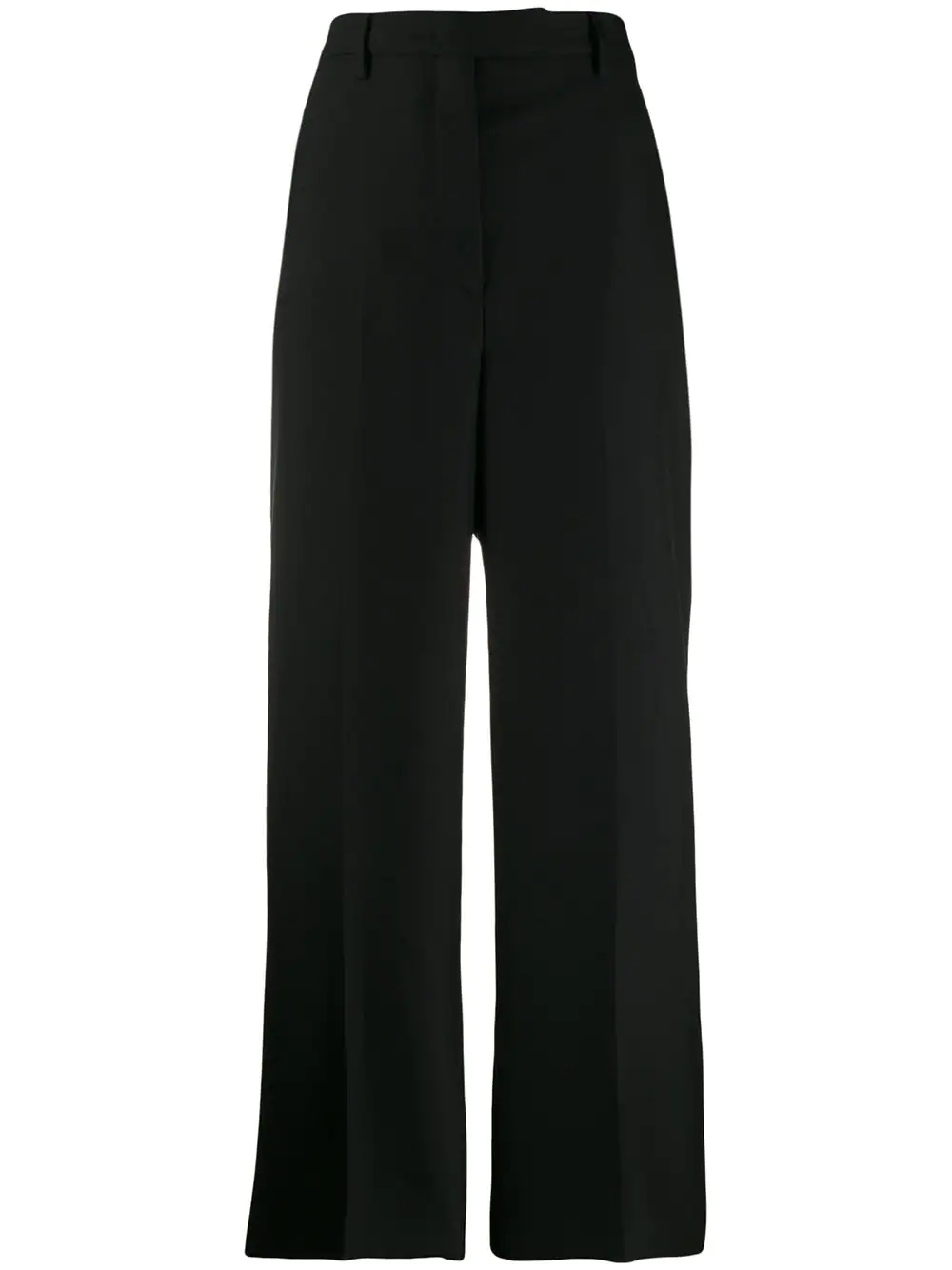 high waisted tailored trousers Prada’s stylistic universe is filled with cleverly constructed, confident designs. These black cotton blend high waisted tailored trousers feature a waistband with belt loops, a hook and zip fly, side pockets, a straight leg, and a rear pocket. Composition Lining: Cotton 100% Outer: Polyester 100% SIZE & FIT Model measurements Height 5 ft 10 in(1.79 m) Bust/Chest 31.88 in(81 cm) Hips 35.43 in(90 cm) Waist 23.62 in(60 cm) FittingInformation This piece fits true to size. We recommend you get your regular size Designed to be fitted at the waist and hips, loose over the leg Made with a lightweight fabric Washing instructions Dry Clean Only