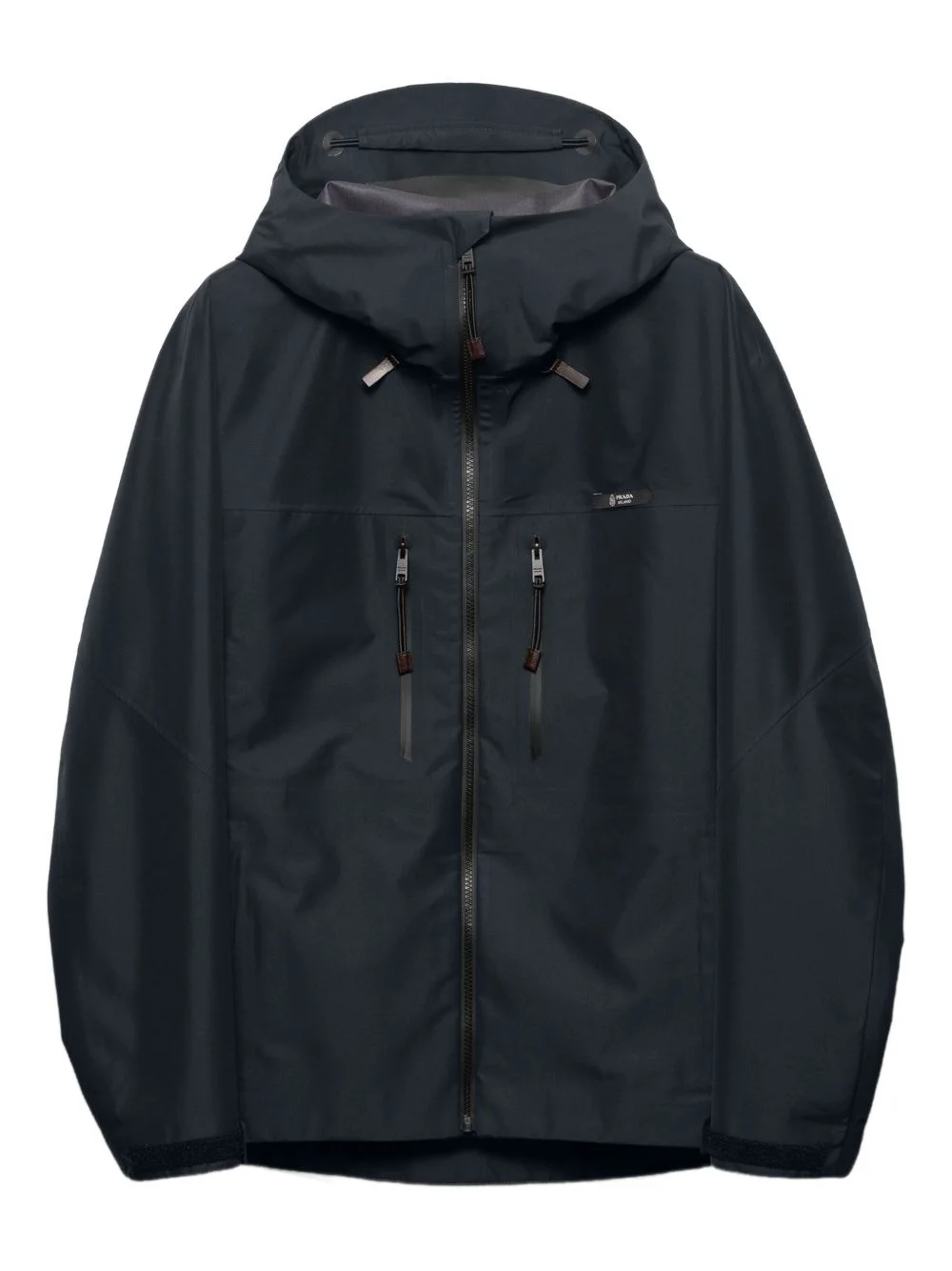 hooded jacket Highlights - Black - Hooded collar - Long sleeves - Zip closure - Zipper pockets - Logo label Composition Recycled Polyester 100%, Polyurethane 100% Washing instructions Read Manufacturer Guidelines