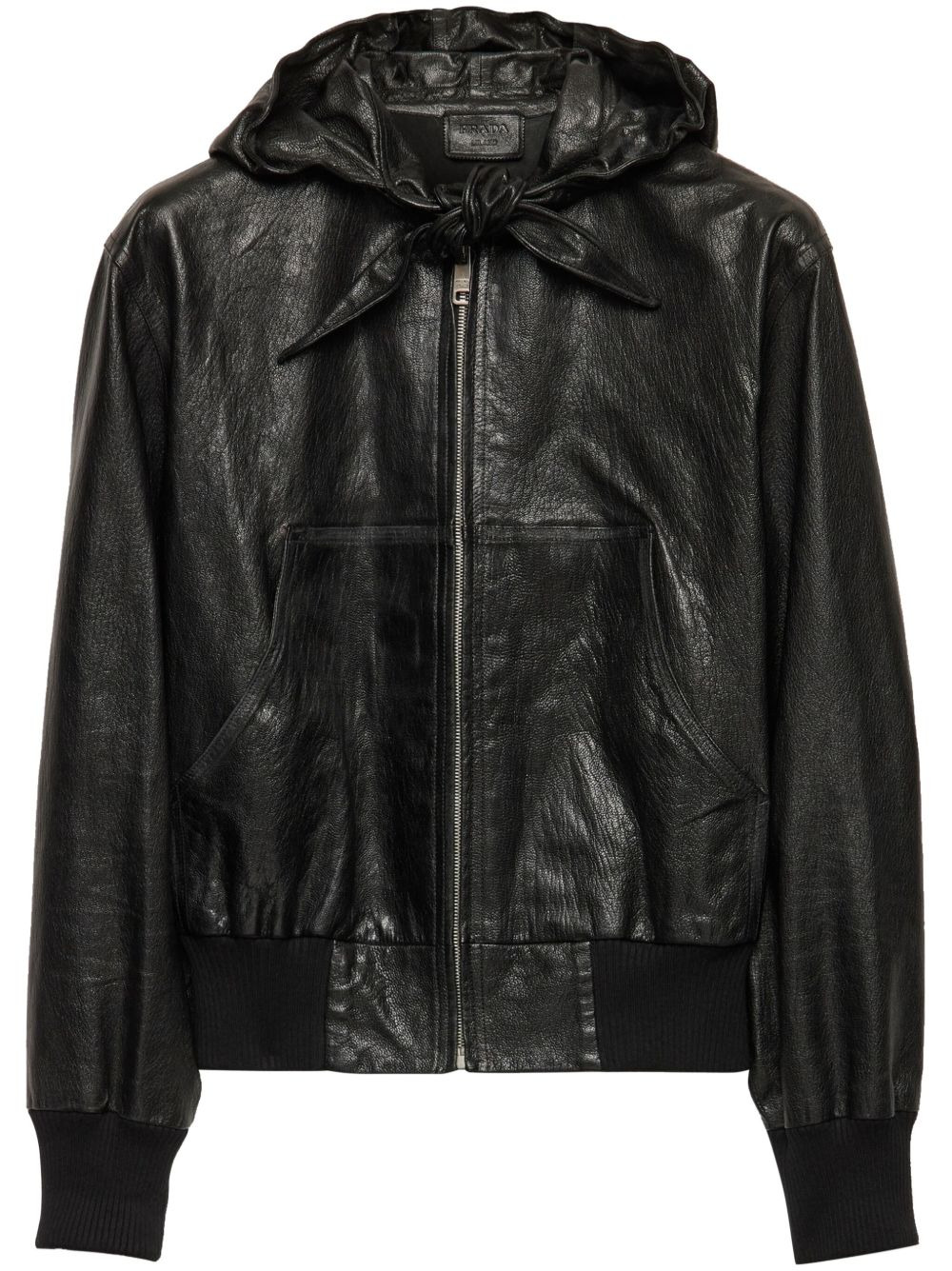 hooded leather jacket Highlights - Black - Front zip fastening - Knot detailing - Two diagonal pockets to the sides - Ribbed hem Composition Leather 100%