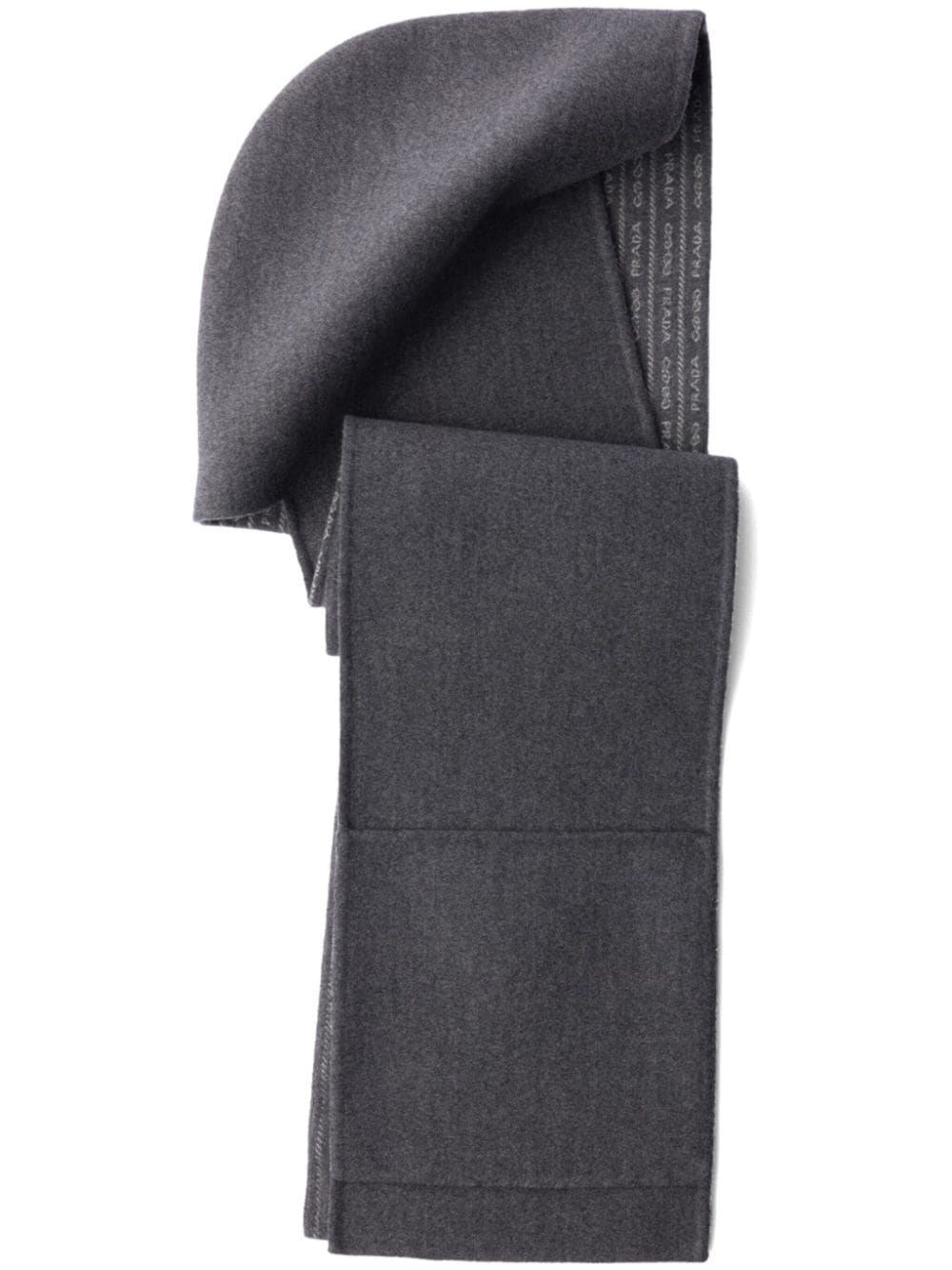 hooded wool scarf Highlights - Anthracite grey - Wool - Jacquard - Melange effect - Wraparound style - Slouchy hood - Triangle logo - Two side patch pockets - Finished edge Composition Wool 100%