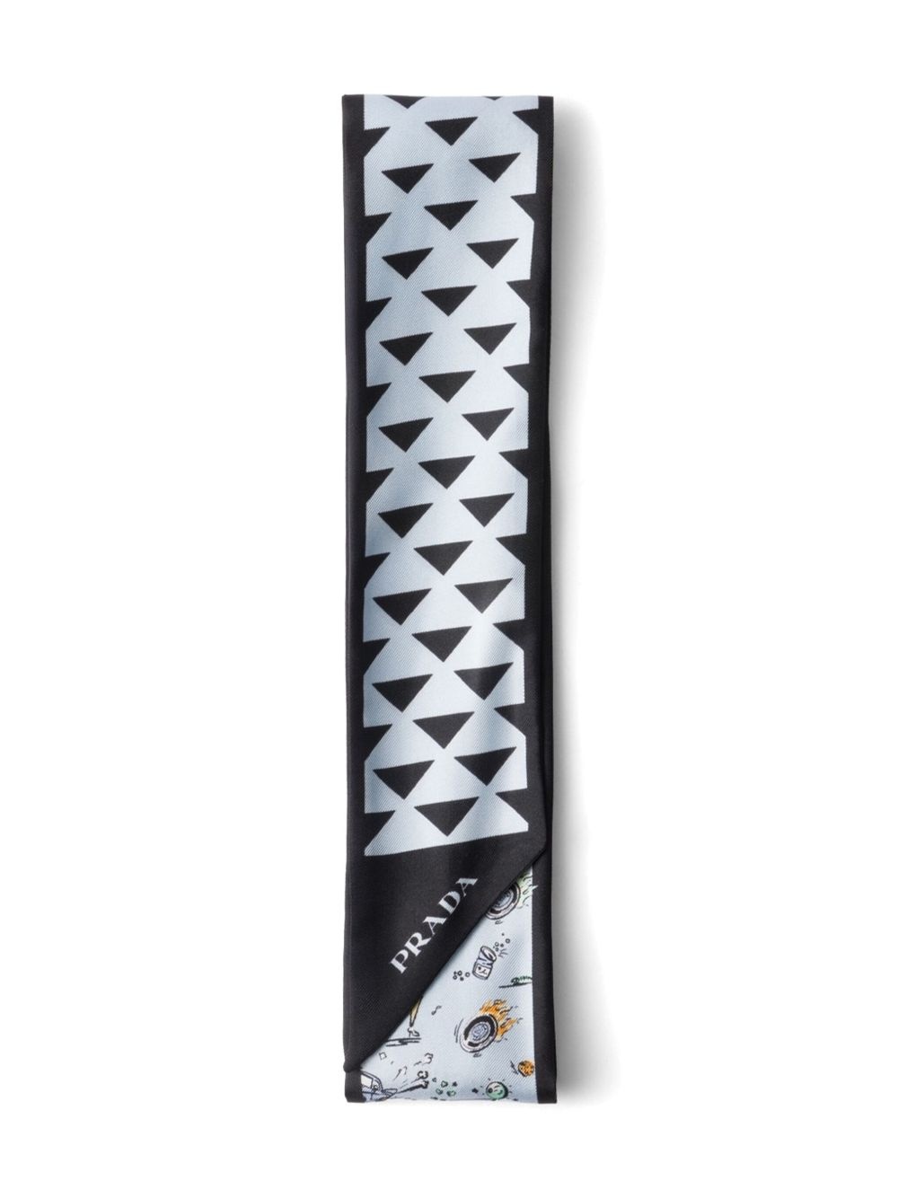 illustration-print silk scarf Highlights - Baby blue - Rectangle shape - Finished edge - Pointed tip Composition Silk 100% SIZE & FIT Measurement LENGTH 21.65 in(55 cm) WIDTH 21.65 in(55 cm)
