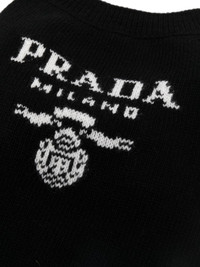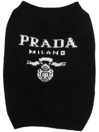 intarsia-knit logo dog jumper Made from a soft blend of wool and cashmere, this jumper from Prada is decorated with an intarsia-knit logo for an instantly recognisable look. Composition Virgin Wool 70%, Cashmere 30%