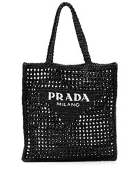 interwoven-design logo-print shoulder bag The original wordmark design, first used in 1919 is showcased at the front of this Prada tote bag, adding an element of the brand's history to a contemporary interwoven design. Highlights - Black/white - Interwoven design - Logo print to the front - Two rounded top handles - Main compartment Composition Outer: Straw 100% SIZE & FIT Model measurements Height 5 ft 10 in(1.79 m) Bust/Chest 33.07 in(84 cm) Hips 35.82 in(91 cm) Waist 24.01 in(61 cm) Measurement DEPTH 1.96 in(5 cm) HEIGHT 15.74 in(40 cm) STRAP 9.84 in(25 cm) WIDTH 13.77 in(35 cm)