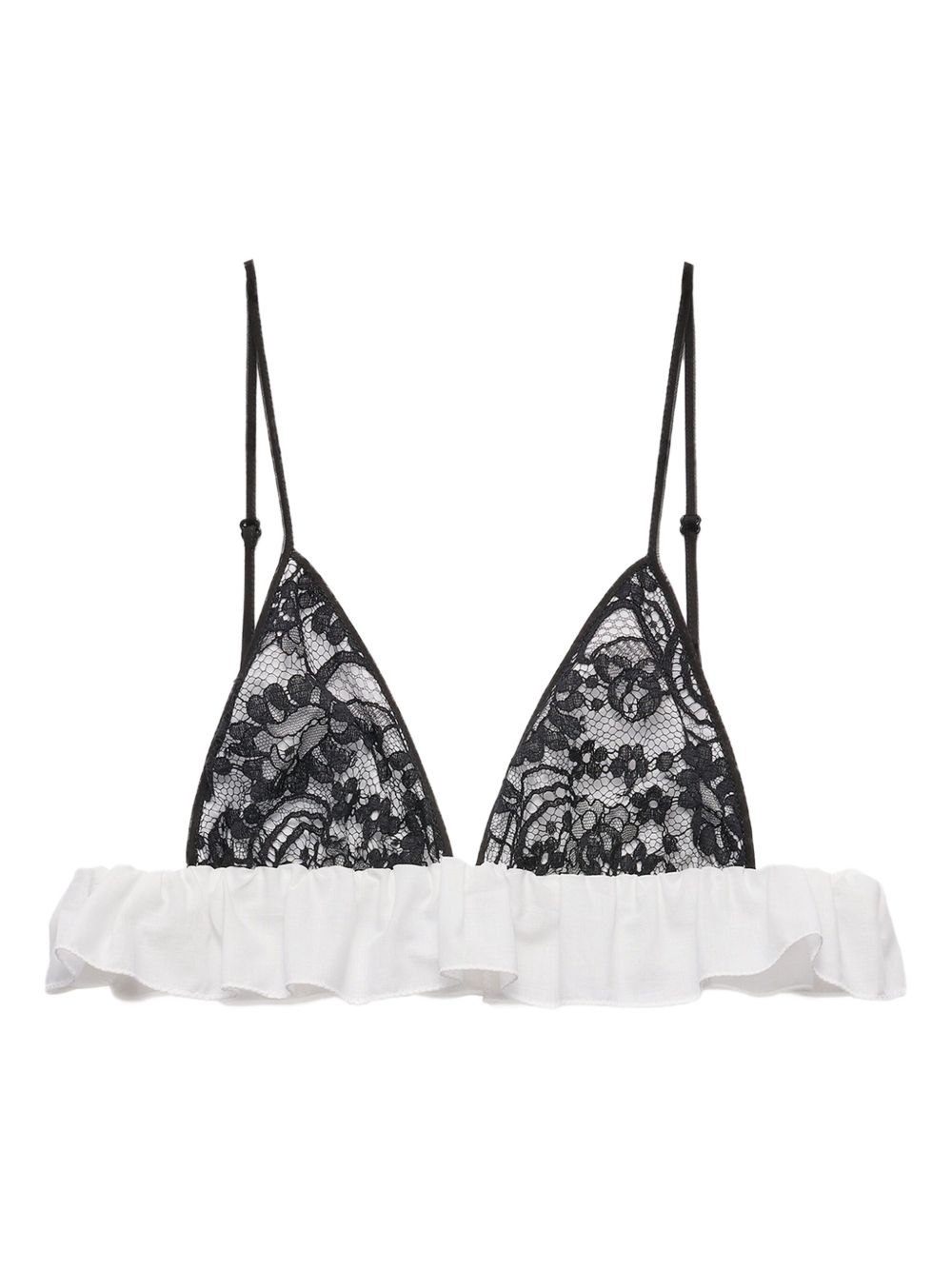 lace-panelling top Highlights - Black - Rear clasp fastening - Triangle cup - Ruffled trim - Spaghetti straps Composition Cotton 71%, Nylon 29%