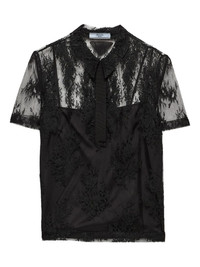 lace polo top Highlights - Black - Front button placket - Short sleeves - Partial lining - Triangle logo Composition Cotton 100% Washing instructions Read Manufacturer Guidelines