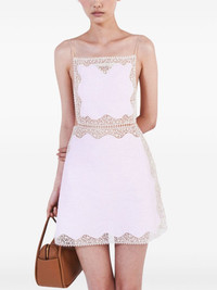 lace-trimmed linen minidress Highlights - Pink - Linen - Lace trim - Spaghetti straps - Square neck - Open back - A-line skirt - Straight hem Composition Linen/Flax 100%