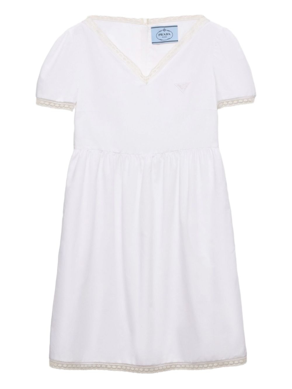 lace-trimmed mini dress Highlights - White - Pull-on style - V-neck - Short sleeves - Logo patch at the chest Composition Cotton 86%, Flax 14%