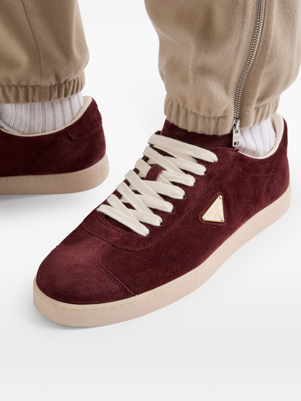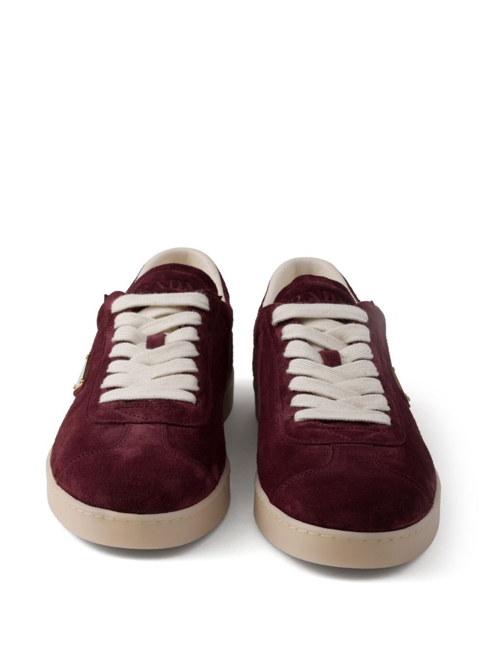 Lane sneakers Highlights - Burgundy - Suede - Enamel triangle logo - Logo-debossed tongue - Branded heel counter - Logo at the sole - Round toe - Front lace-up fastening - Removable insole - Contrasting rubber sole Composition Lining: Leather 100% Sole: Rubber 100% Outer: Suede 100% SIZE & FIT Measurement HEEL 0.98 in(2.5 cm) Sole height 0.78 in(2 cm)