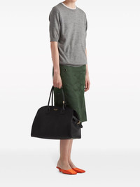 large leather tote bag Highlights - Black - Leather - Two rolled top handles - Handle holder - Logo stamp to the front - Side buckle fastening - Open top - Main compartment - Internal zip-fastening pocket - Internal logo stamp - Gold-tone hardware Composition Outer: Leather 100% SIZE & FIT Measurement DEPTH 7.87 in(20 cm) HANDLE 7.08 in(18 cm) HEIGHT 11.41 in(29 cm) WIDTH 15.74 in(40 cm)