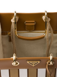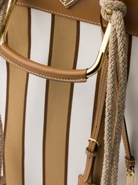 large printed tote bag Highlights - Caramel brown - Open top - Two metallic top handles - Two long top handles - This piece comes complete with a protective dust bag. Composition Outer: Leather 100%, Canvas 100% Lining: Linen/Flax 100% SIZE & FIT Measurement DEPTH 6.69 in(17 cm) HEIGHT 13.77 in(35 cm) WIDTH 10.23 in(26 cm)